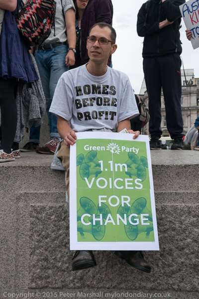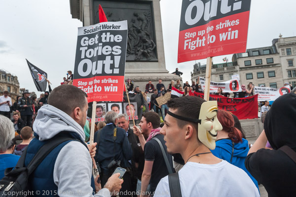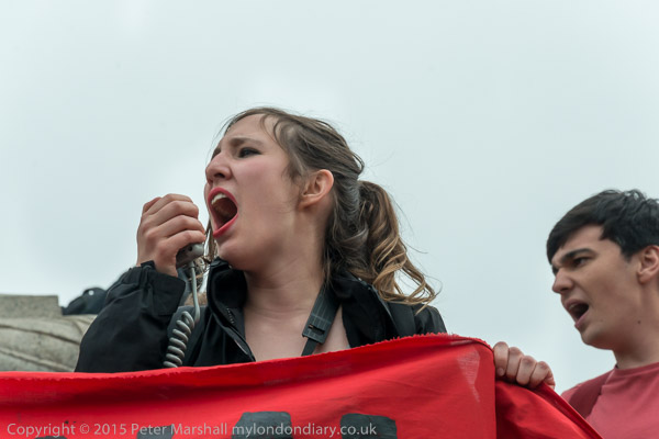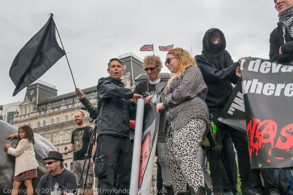 to loud cheers and raised fists from the hundreds of protesters in Trafalgar Square