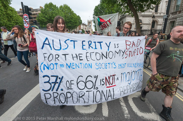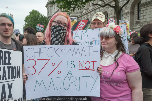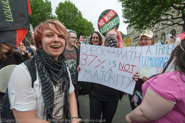 ![]() 'Check your Math 37% is NOT a Majority' ![]() ![]() ![]() The protesters marched away from Downing St ![]() with that Anti-Austerity banner again. But I went home and left them to it. |