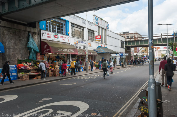 The Coal Line would start here, on the north side of the railway line to Queen's Road Peckham, opposite  Z A Afro Foods