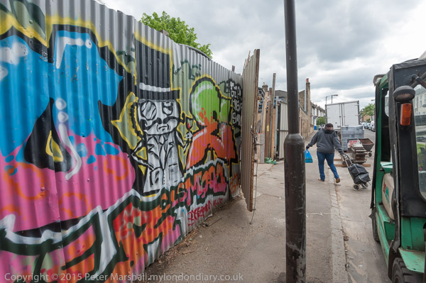 Again some boring streets, then into busy Consort Rd, where the entrance to the scaffolding yard is