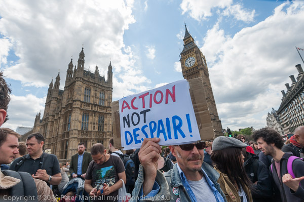 In Parliament Square where many of the protesters now go, a protest against getting rid of the Human Rights Act is coming to an end