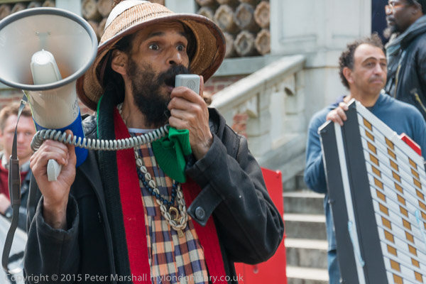 Speeches explain to the opera goesr on the balcony why people are protesting