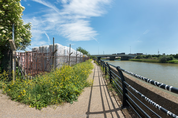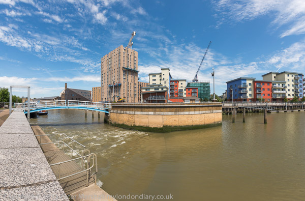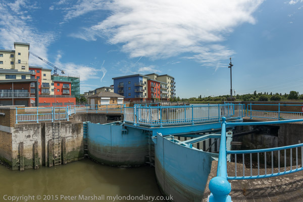 The Barking Barrage, a half tide lock that stops the river above it drying out at low tide