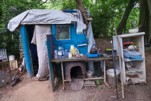 One of many homes built by residents. If they leave the camp, others may move in - property isn't owned but used