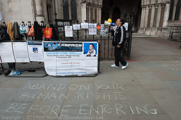 'Abandon your Human Rights before entering' chalked outside the Royal Courst of Justice