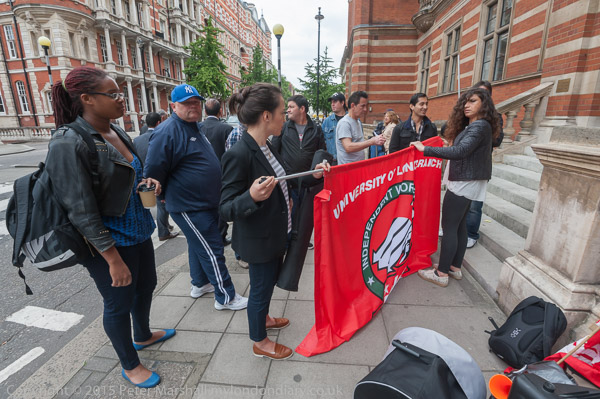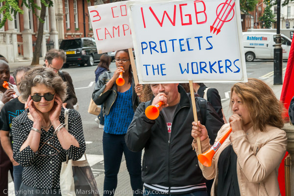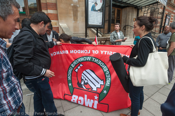 They get out the Independent Workers of Great Britain (IWGB) banner
