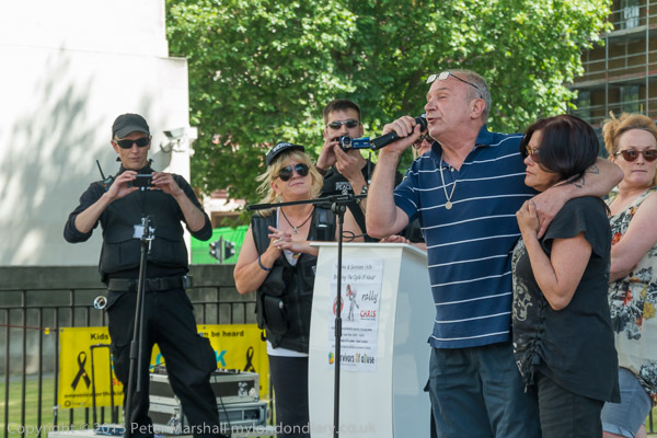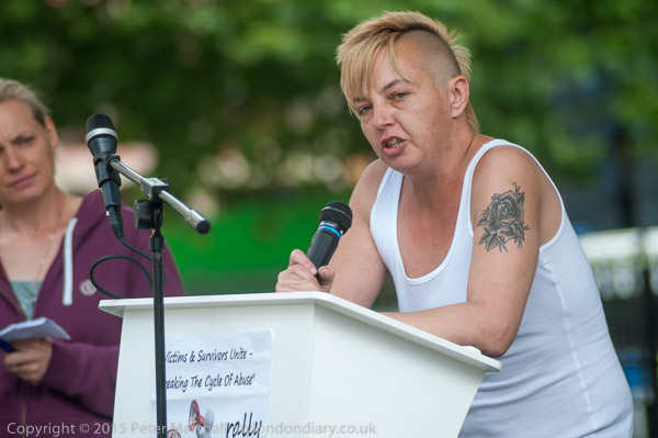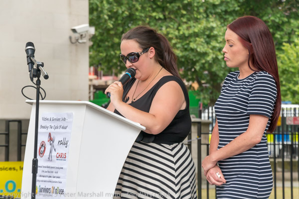 A woman gives a harrowing account of her abuse as a teenage girl to the rally