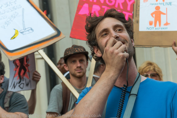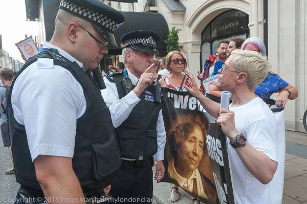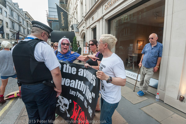 An officer tries to get Class War to move their banner away