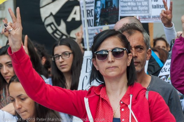 People give V for Victory signs as they remember those killed in the Suruc massacre