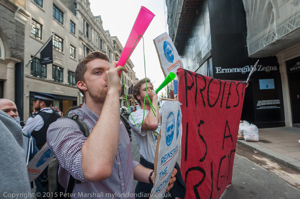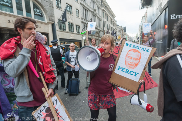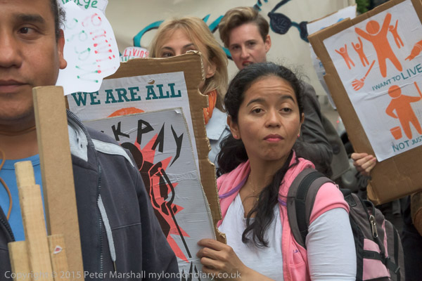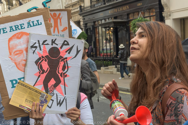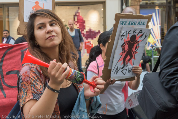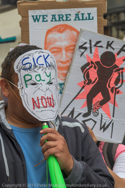 ![]() ![]() ![]() ![]() ![]() ![]() ![]() ![]() ![]() ![]() ![]() ![]() Finally, after the usual message, 'We'll bee back' that the protests will continue until the sacked workers are reinstated and the other demands are met, the protest looked about ready to end and I left. Shortly after a a large group of cyclists from Critical Mass came to join in, but I had already left. |