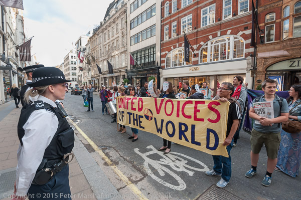 ![]() Paula Peters of DPAC speaking ![]() ![]() ![]() A UVW member who has been sacked for trade union activities at the Barbican speaks ![]() ![]() And Vera leads the protesters on a march around to the front entrance ![]() where they stand in the road facing police ![]() ![]() blocking the road and and making a lot more noise ![]() ![]() ![]() |