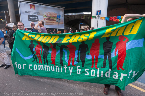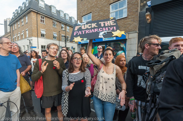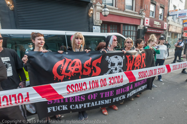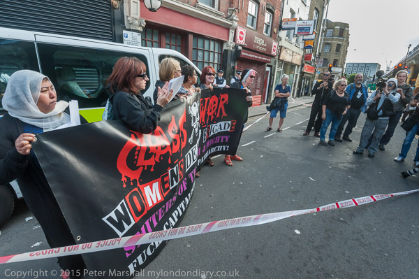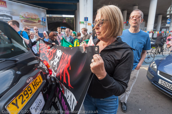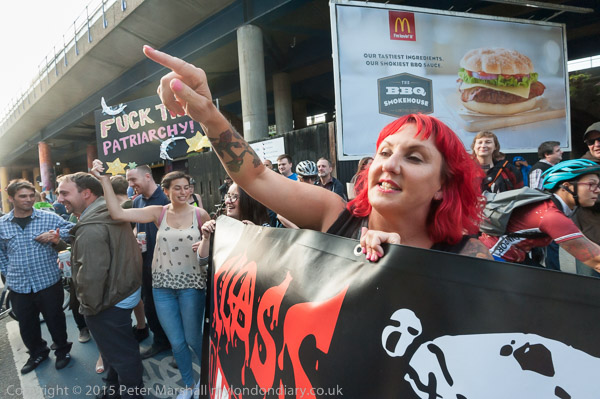 The protesters let some traffic flow past, but blocked the road for a while. Bikes could still get past.