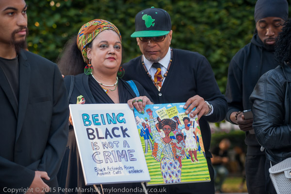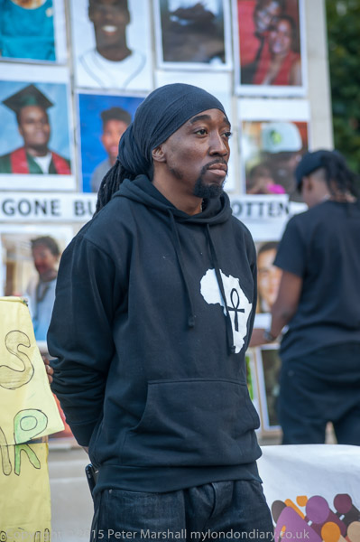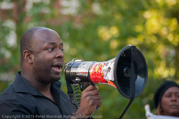 Sam who introduced the speakers at BlackoutLDN2015. His top has a map of Africa with an ankh on it