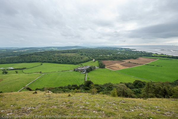 Arnside Tower and a farm were around 130 metres below us and perhaps 400m away but we walked much further to reach them