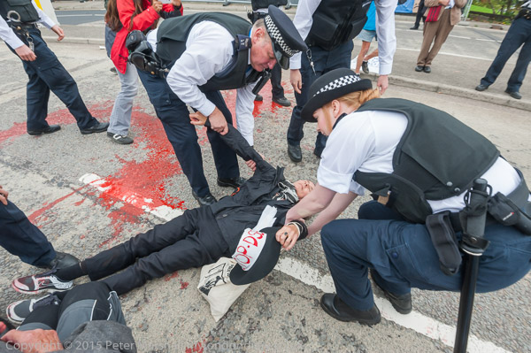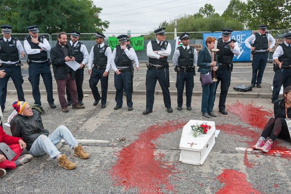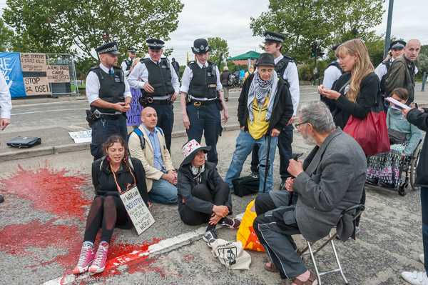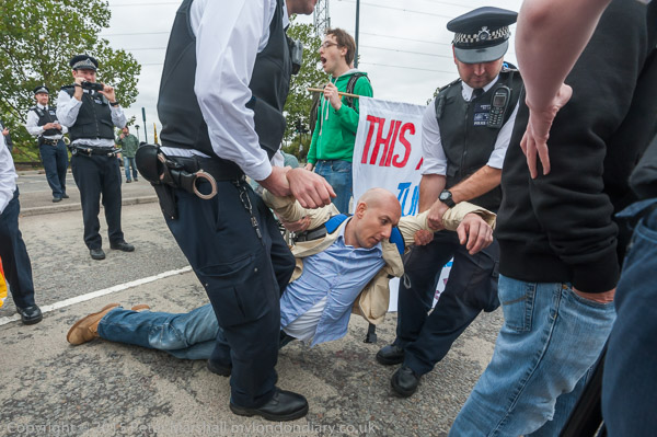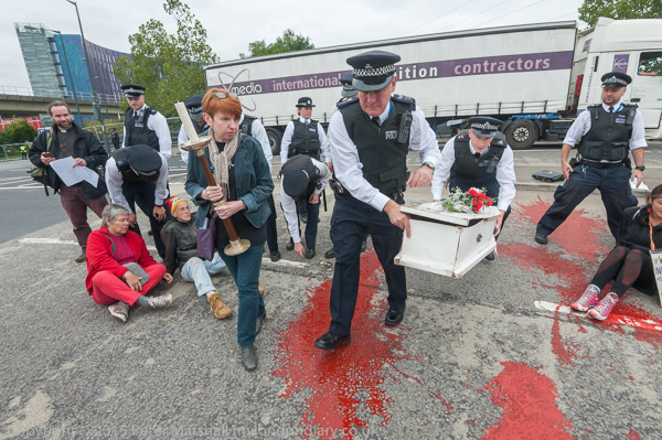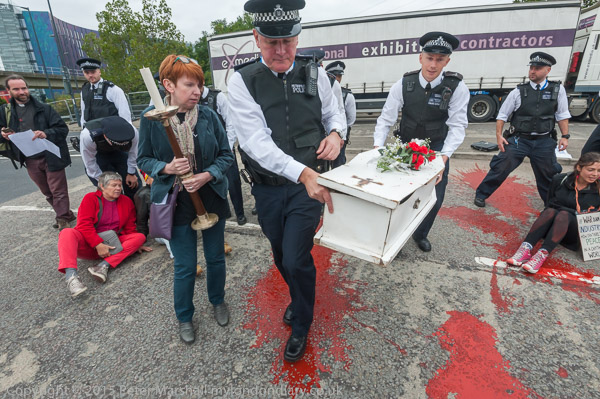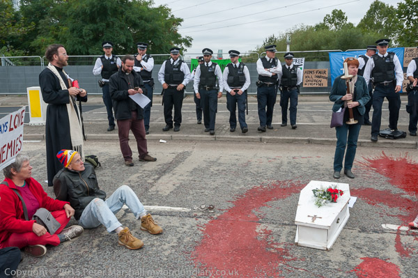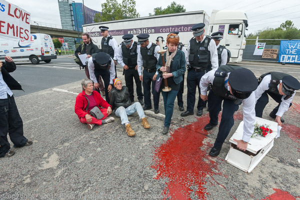 some of the protesters have gone to block the other gate to Excel, to the west of the site.