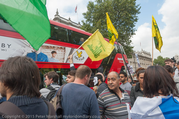 ![]() ![]() ![]() ![]() ![]() ![]() ![]() There are a handful of Hezbollah flags at the protest ![]() Some of the pro-Israel protesters complain to police that Hezbollah is a terrorist organisation and is prohibited in the UK, but it is only the military wing of Hezbollah that is proscribed here and not the organisation as a whole. ![]() More police arrive ![]() One of the protesters has a Welsh flag ![]() ![]() ![]() The protest was continuing as I left |