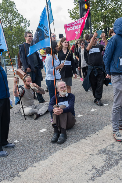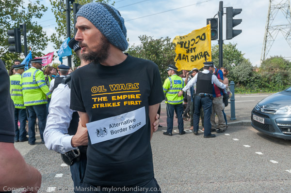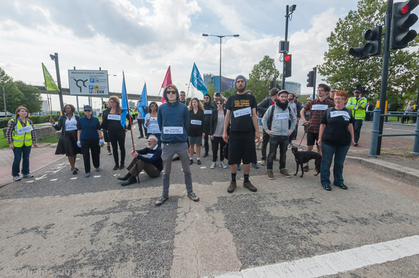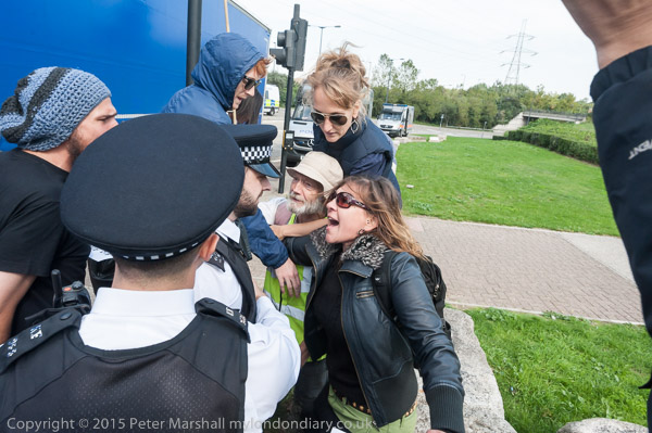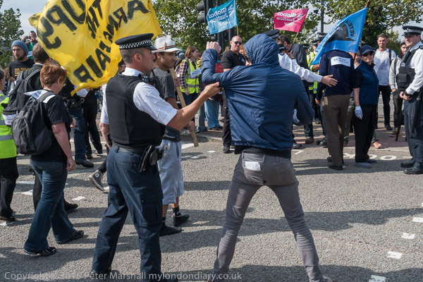 Police come on to the road and tell them to get off it, dragging them away if they do not move