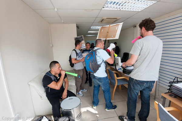 Protesters go back inside the office