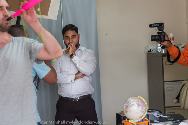in some of the images above where Bhatti tried to grab the plastic horn from Elia.