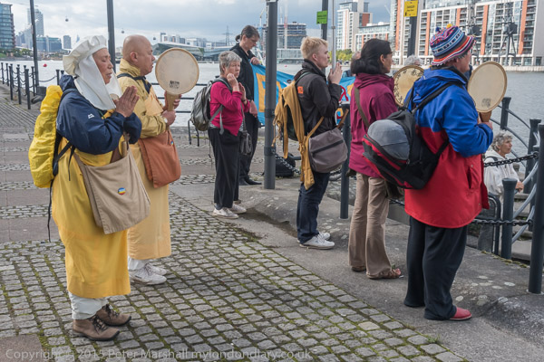 The campaigners walk along the dockside