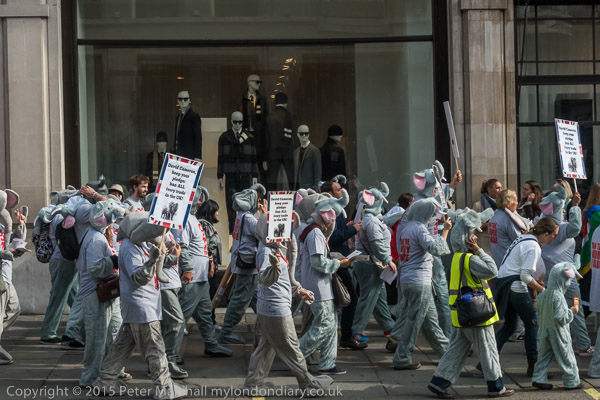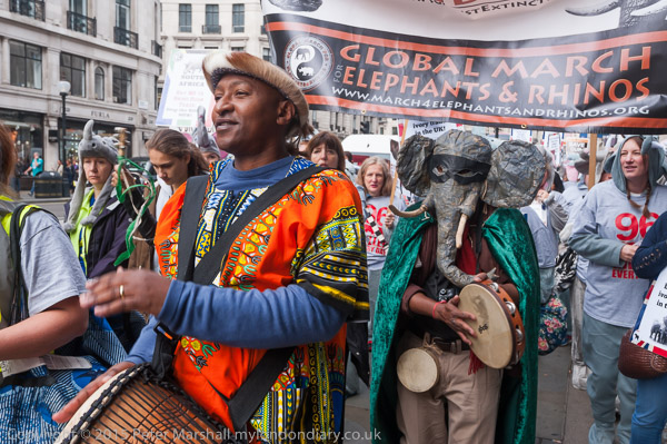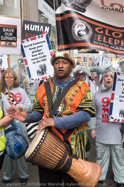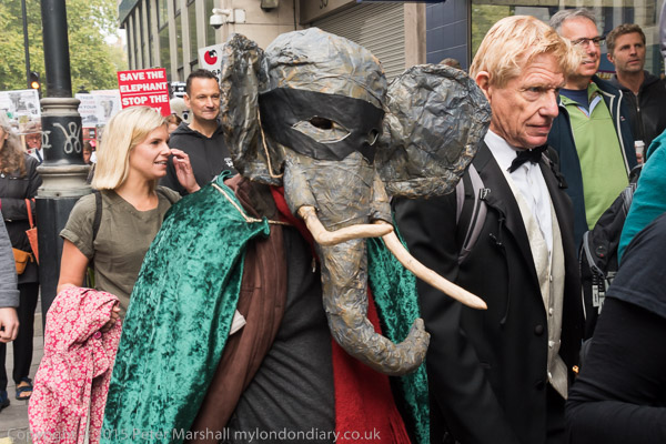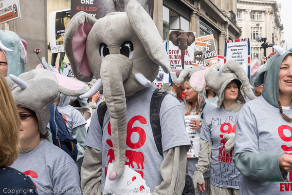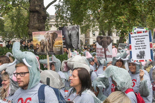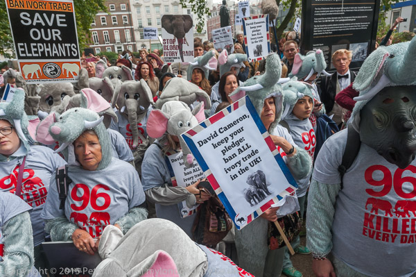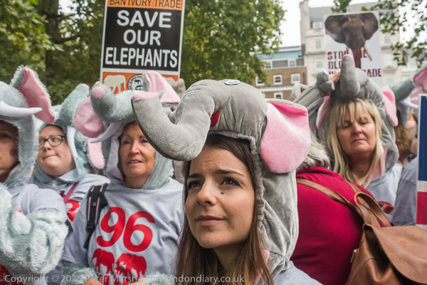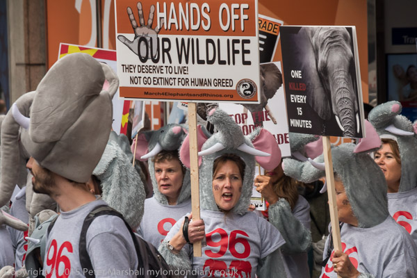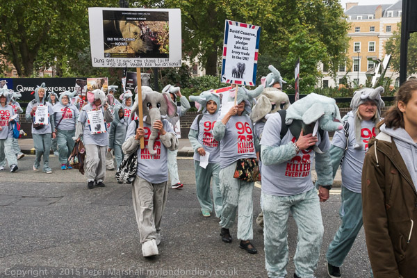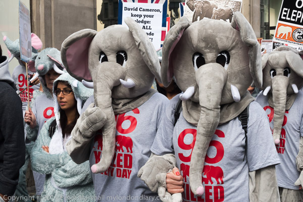 There were 96 protesters dressed in these elephant costumes - the number killed by poachers every day