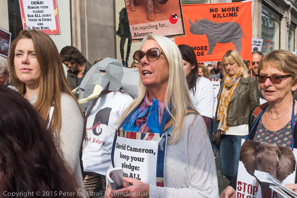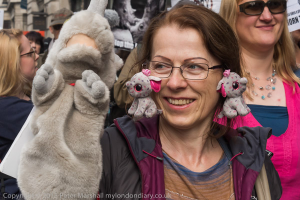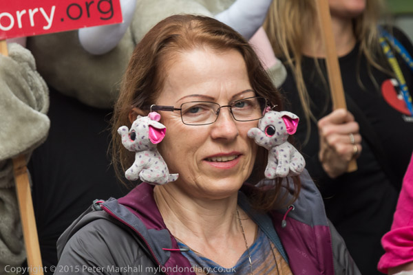 A woman with two elephants on her glasses - I phtoographed her again later on the march