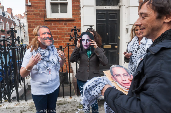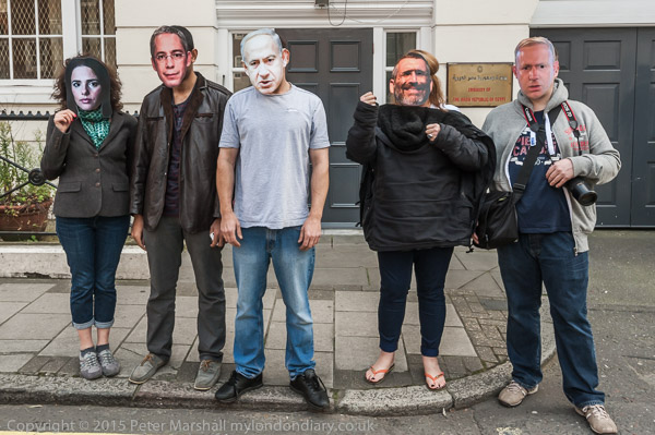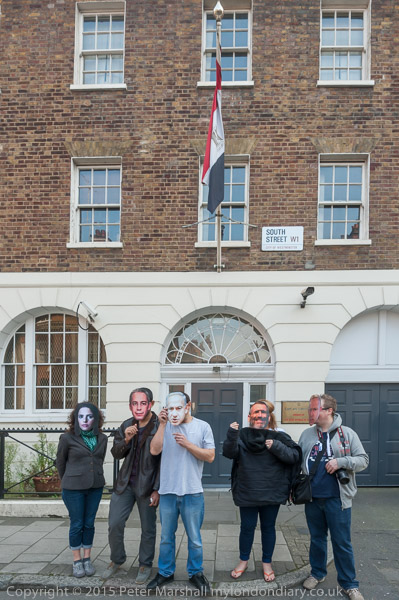 ![]() Few people were opposite the Embassy when I arrived ![]() One of the protesters held a poster '#Where is Talula, the name assumed by an Internet troll who comments ![]() on many of the group's posts and claims to attend pro-Palestinian protests but has never done so. ![]() ![]() Several of the protesters gave interviews to an Italian woman working on a video project ![]() ![]() ![]() ![]() ![]() Protesters shouted at the Egyptian embassy every time someone went in or out ![]() Slowly more protesters arrived ![]() Masks were handed out of some Egyptian and Jewish politicians |