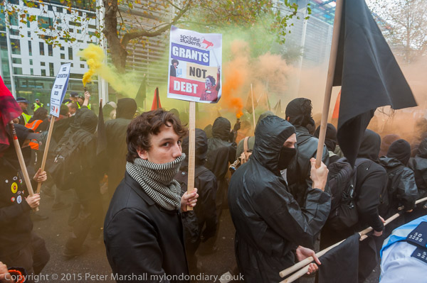 clad and masked students in an autonomous bloc towards the rear of the march.