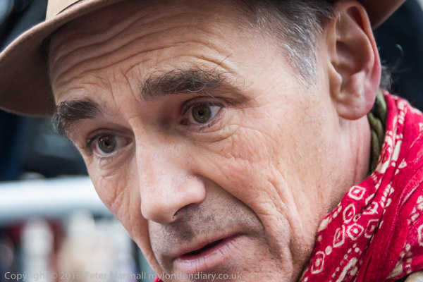 The speakers were introduced by Andrew Murray of Stop the War and Unite, and included Musician Brian Eno, Actor Mark Rylance, British Pakistani writer, journalist, and filmmaker Tariq Ali, Lindsey German of Stop the War, Green Party Deputy Leader Shahrar Ali, NUT Vice President Philipa Harvey, John Rees of Stop the War and People's Assembly, The Guardian and New Statesman columnist Owen Jones, Unite Against Fascism Joint secretary Sabby Dhalu, George Galloway, CND Chair Kate Hudson and John Hilary, Executive Director of War on Want. MP Diane Abbott (like some others) was held up in traffic and arrived after I had moved across to photographing the sit-down.