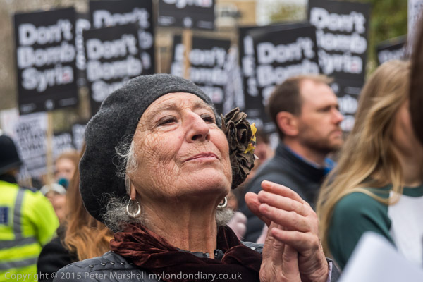Several thousand people came to Downing St to urge MPs not to support British air strikes on Syria, saying a diplomatic solution should be found to the conflict. They expressed strong support for Jeremy Corbyn's principled stand and urged all Labour MPs to back him.
