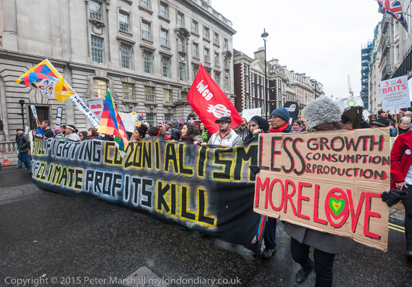 The London protest was said to to be the second largest of these events, with an estimated 50,000 people taking part - out of a roughly 600,000 involved in the world-wide protests, just 10,000 less than the protest in Melbourne. It had an extra impetus from the ban on protests in Paris, with many from the UK who would otherwise have travelled there protesting in London instead.
