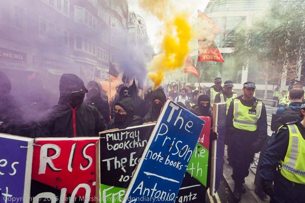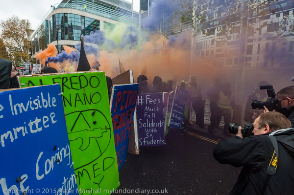 When I got back to the march at the Home Offfice there was a lot of smoke