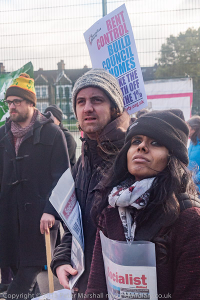 ![]() Campaigners gather in Abbots Park for a rally before the march ![]() ![]() ![]() ![]() The Fire Brigades Union fire engine parked on the street outside the park entrance gave speakers a platform ![]() 'Rent Control Now!' and 'Mass Building of Council Homes' are the only ways to solve London's housing crisis ![]() A man raises his fist in support of a speaker ![]() and others cheer ![]() The dog watches too ![]() |