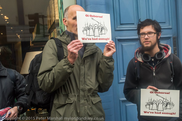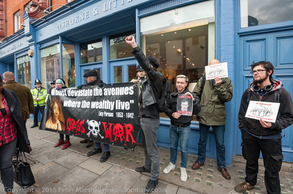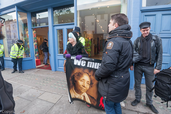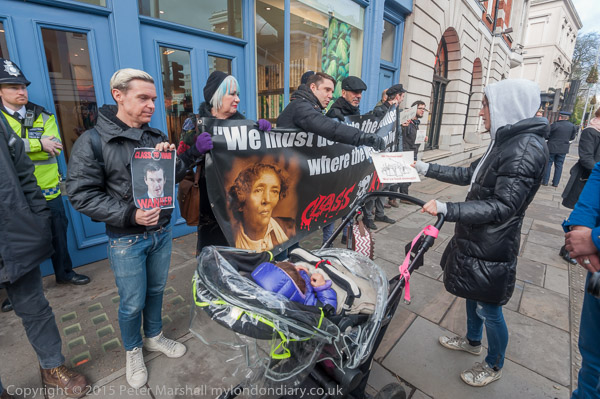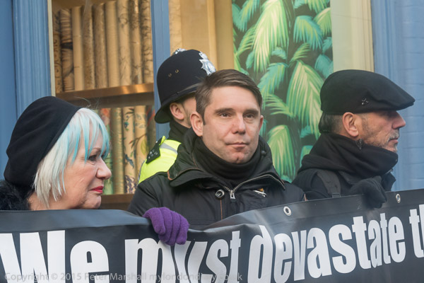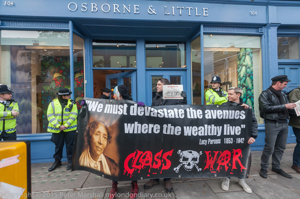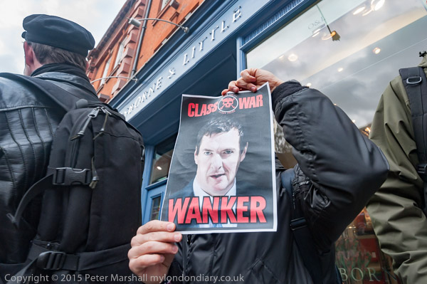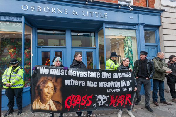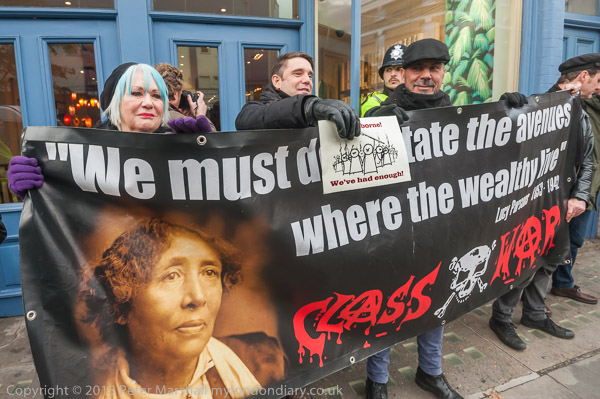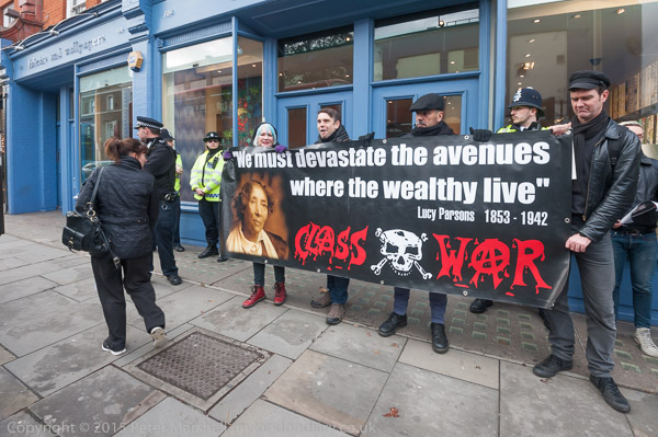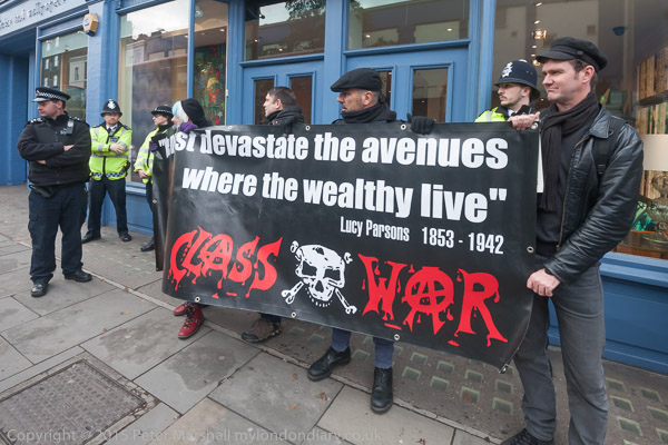 Class War arrives - and one man goes inside the shop to tell staff why they are protesting and ask them to pass