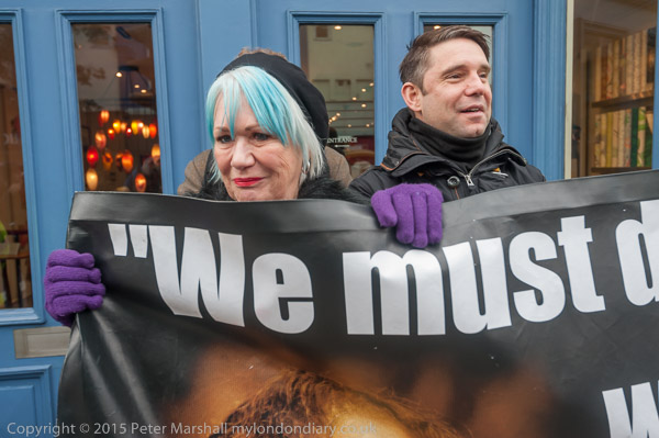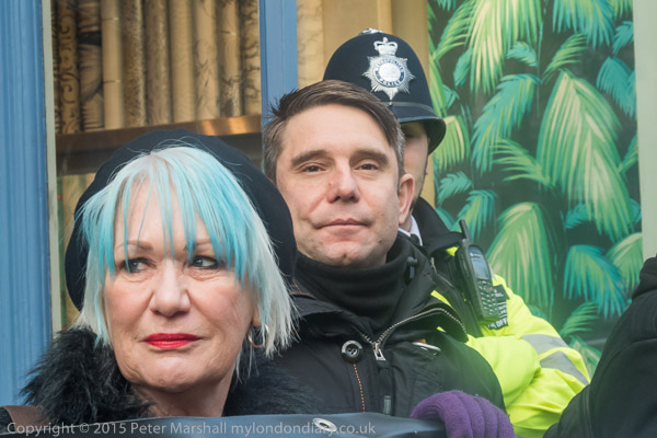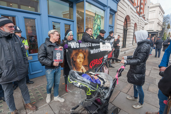 Around ten people turned up for the protest as well as two sympathetic legal observers. It was hard to count the
