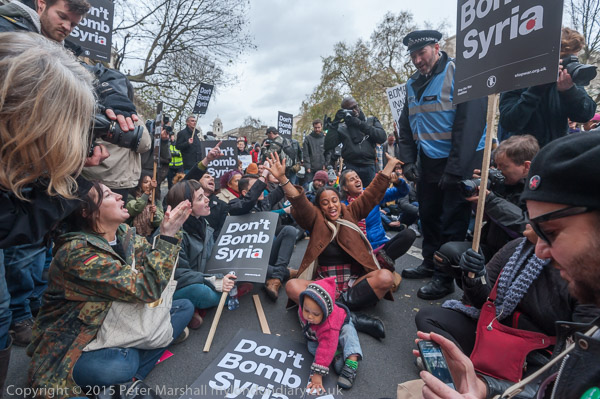 People moved on to the road and stood there blocking it. Police tried to persuade them to move with little success