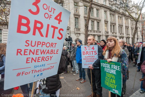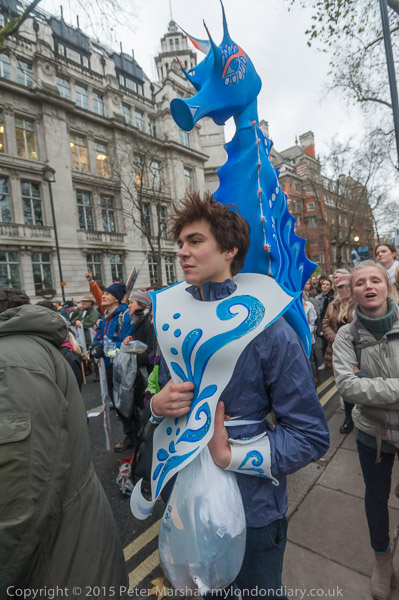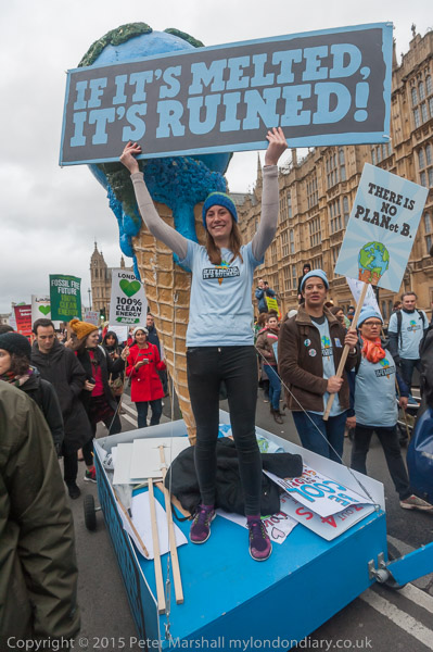 ![]() Two large screens relayed the performances on the stage, the other a few hundred yards along the street in front of Parliament ![]() There were some interesting spoken word performances ![]() which gained applause, but ![]() ![]() the start of the rally at least seemed to be something of an anti-climax to me. ![]() And lacking in political comment on our current governments move away from renewable energy ![]() ![]() ![]() ![]() ![]() ![]() Kye Gbangbola talks to marchers and collects petition signatures. Floodwater got into landfill adjacent to their home near Chertsey Bridge in February 2014, killing his 7 year-old son Zane and leaving Kye in a wheelchair. The authorities tried to cover up the cause and to pin blame on him suggesting it was the result of carbon monoxide poisoning from a faulty generator that was not in use, but evidence has now emerged that the fire fighters who attended the incident detected dangerous levels of hydrogen cyanide. Many landfill sites will have similar dumped cyanides and as well as wanting the truth about his son's death, Kye and his partner's campaign wants to ensure that all such sites are properly monitored to prevent similar tragedies. ![]() ![]() 'If it melts it's ruined' - whether its ice cream in a cone or global icecaps |