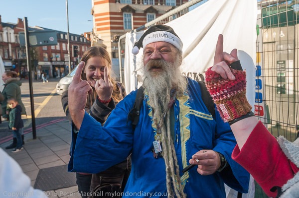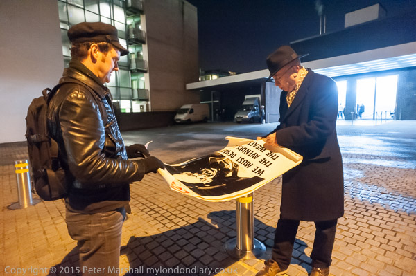 Police were not very co-operative, but made little attempt to interfere with the protest, although early on they appeared to object to Jane Nicholl's language - and she had been advised by Ian Bone to tone it down. It would have been appropriate also for this and earlier protests to put a couple of cones in the parking space directly outside the 'museum' (as I think they did for a protest in which the Tower Hamlets mayor took part) and I was rather aggressively warned by one officer that my cameras might be scratching the car that was parked there.