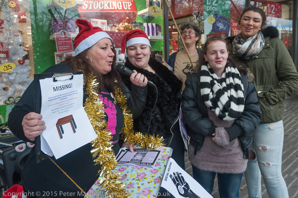 anti-austerity Christmas Carols with them and some of those present joined