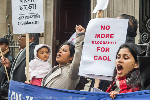 The AGM apparently took place in the luxurious rooms of the Royal Aeronautical Society, just off Piccadilly in Hamilton Place. The protest, on a Friday morning, was only a small event, but included several of the leading activists from the Phulbari Solidarity Group and Bangladesh National Committee, UK branch along with other supporters. In the UK the protests have been supported by various groups including Global Justice now and the Socialist Party.