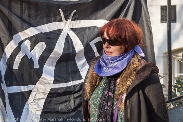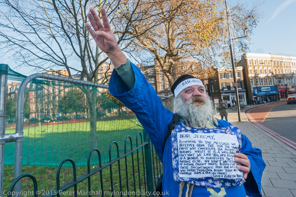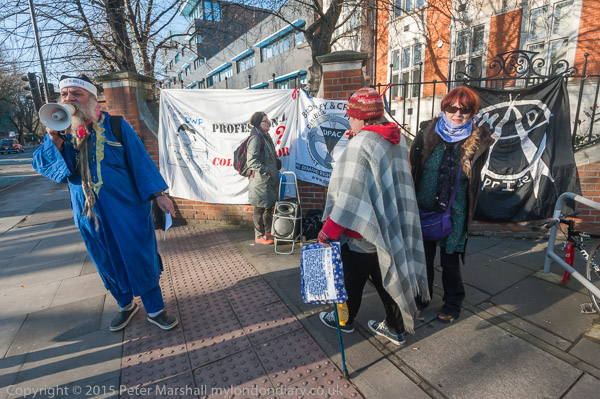 The protesters walk to meet others already outside the Southwark 'Hub' at Thames Reach Employment Academy,