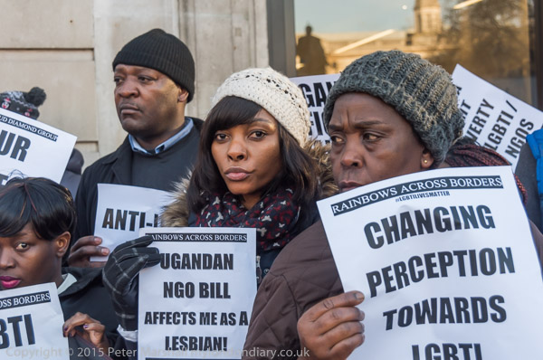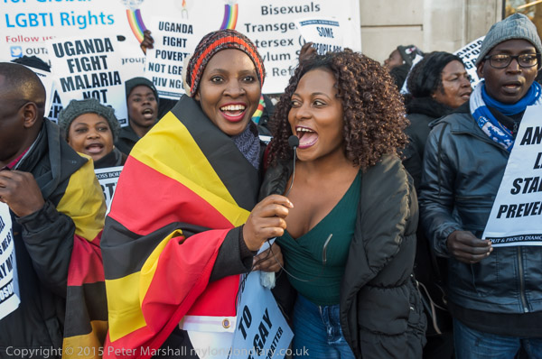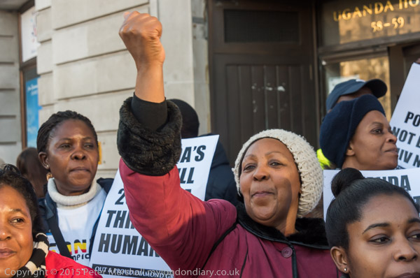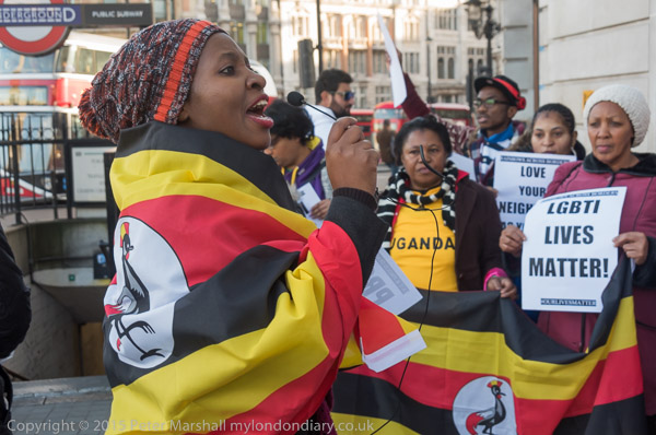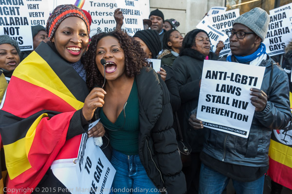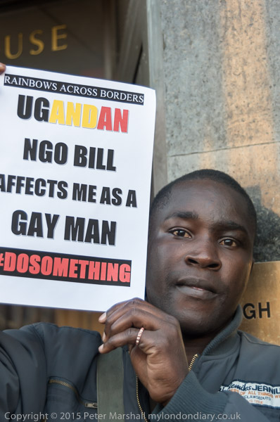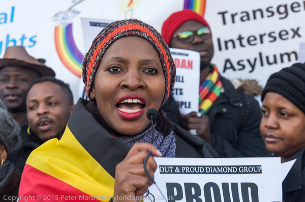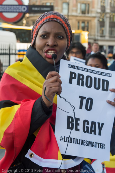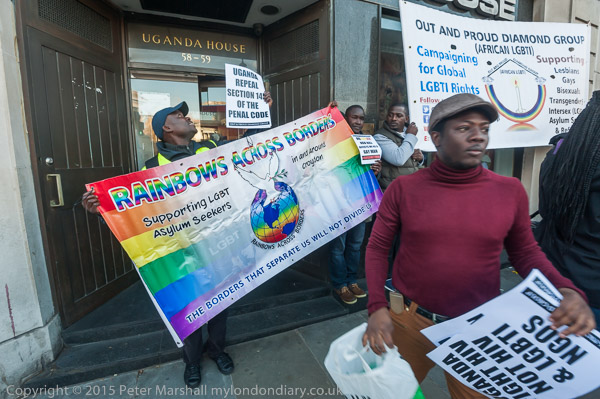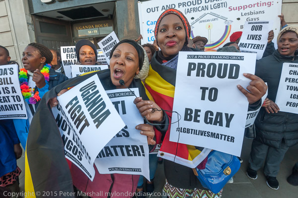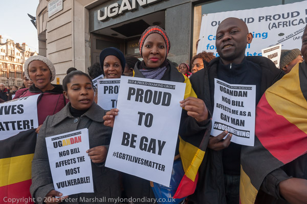'Proud to be Gay' - the Out and Proud Diamond Group in front of Uganda House