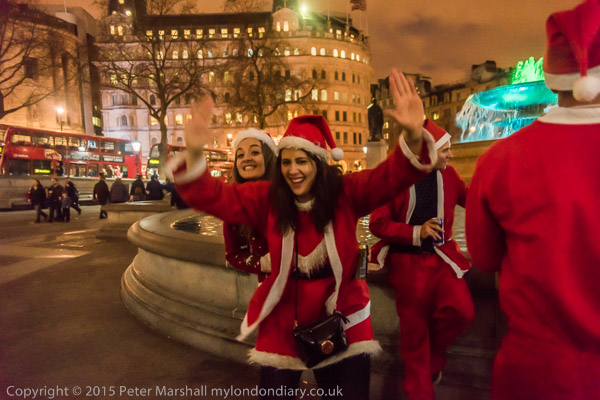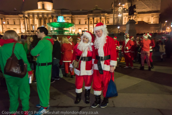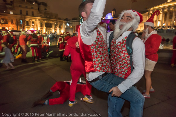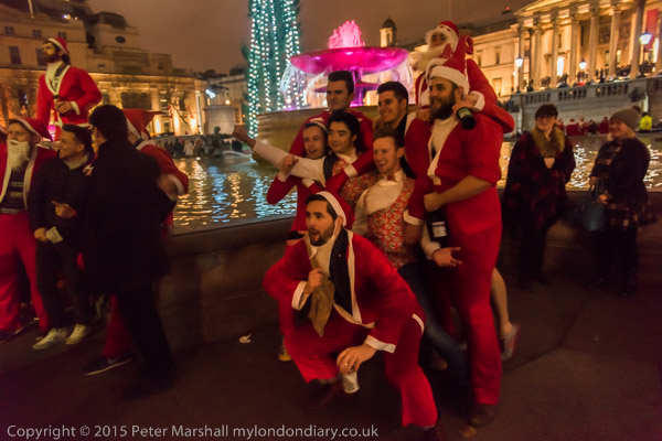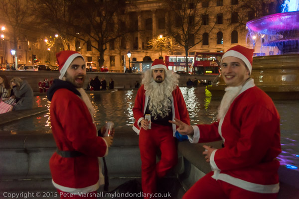 Many of those who took part in the annual Santacon crawl around London ended up in Trafalgar Square