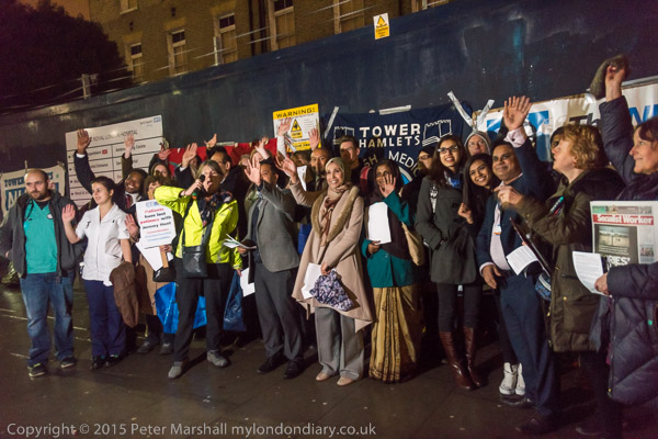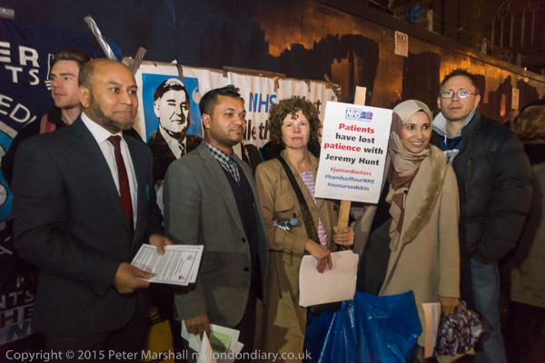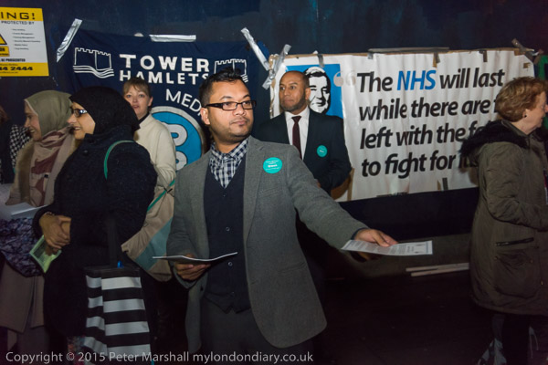Tower Hamlets Councillor Oliur Rahman hands out leaflets at the prot
