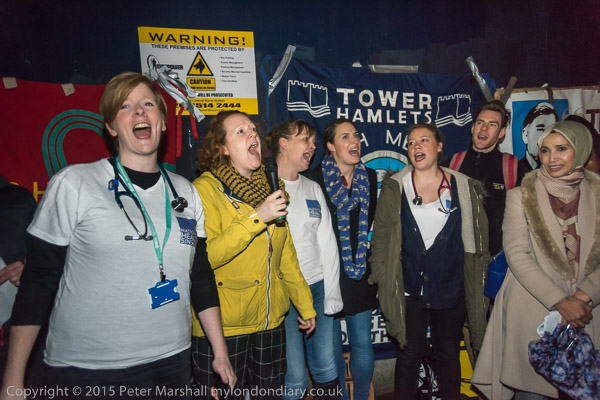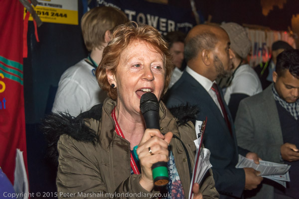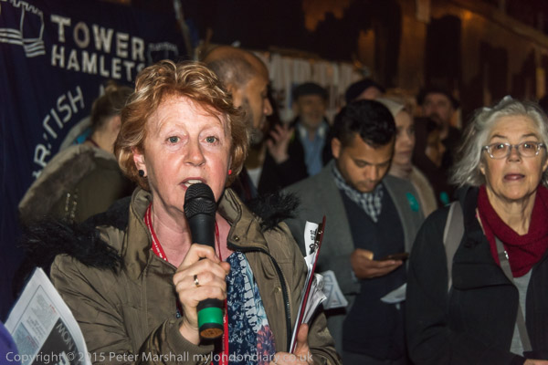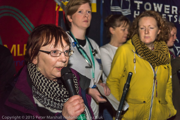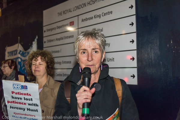 Maggie Falshaw of the 'Save Our Surgeries' campaign against cuts in payments to surgeries in Tower Hamlets