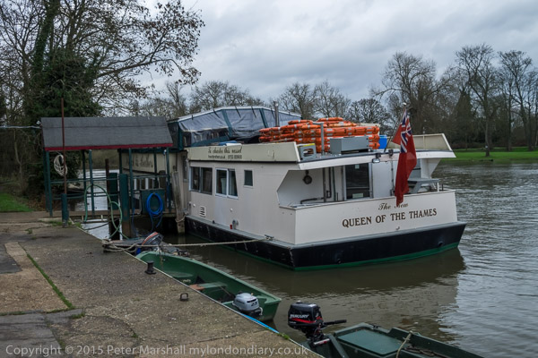 ![]() to the acre of the USA containing the Kennedy memorial ![]() ![]() and down to the meadow and The Jurors. ![]() There may be an exhibition here about Magna Carta by Brunel University inside this shed, but it has never been open when I've passed ![]() French Brothers 'Queen of the Thames'. |