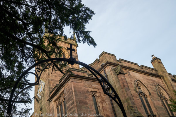A short walk along the road is the church behind which are a row of Arkwright family graves
