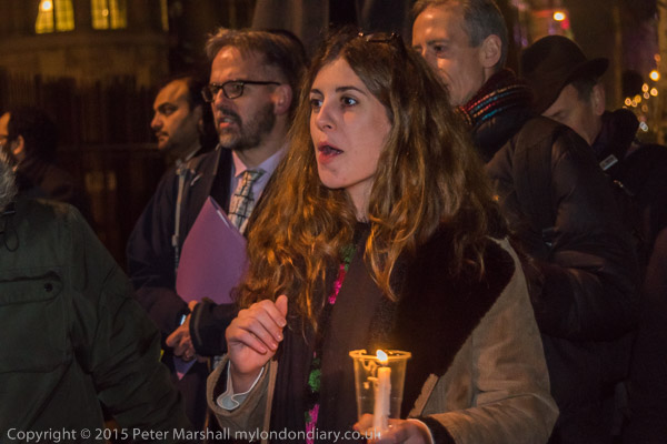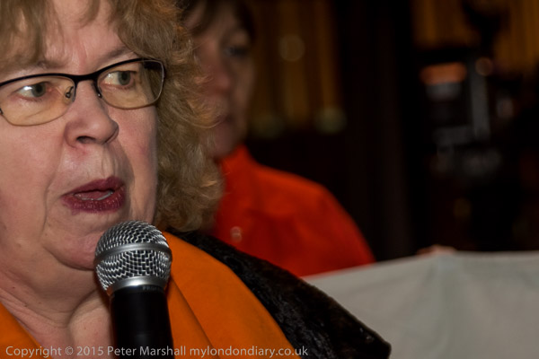 London's Green MEP Jean Lambert speaking - as she has at many protests calling for Shaker to be released