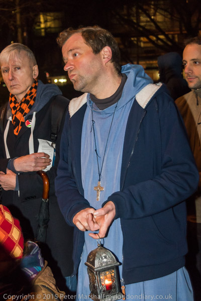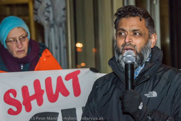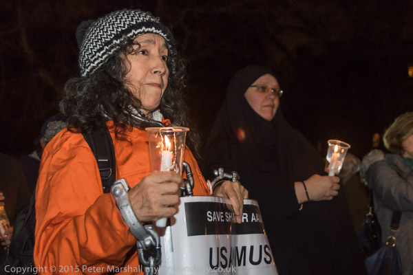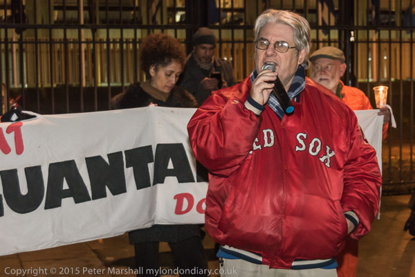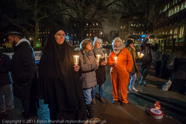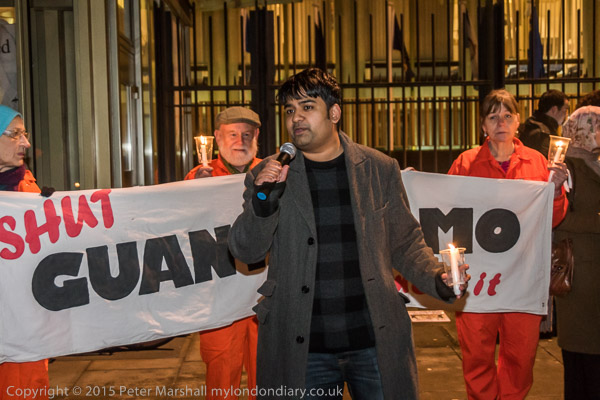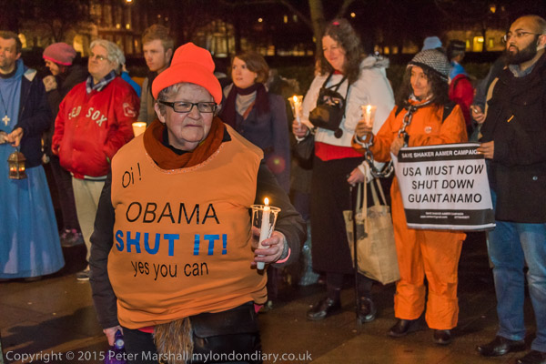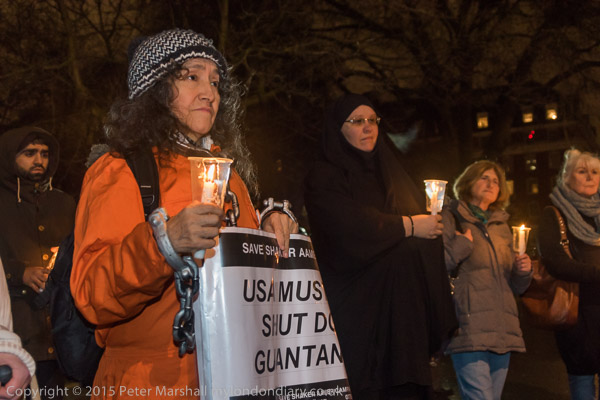 Another regular protester with the Save Shaker Aamer and other campaigns in orange jump suit and chains