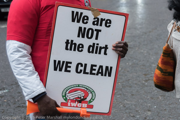 'We Are Not The Dirt We Clean' states an IWGB poster